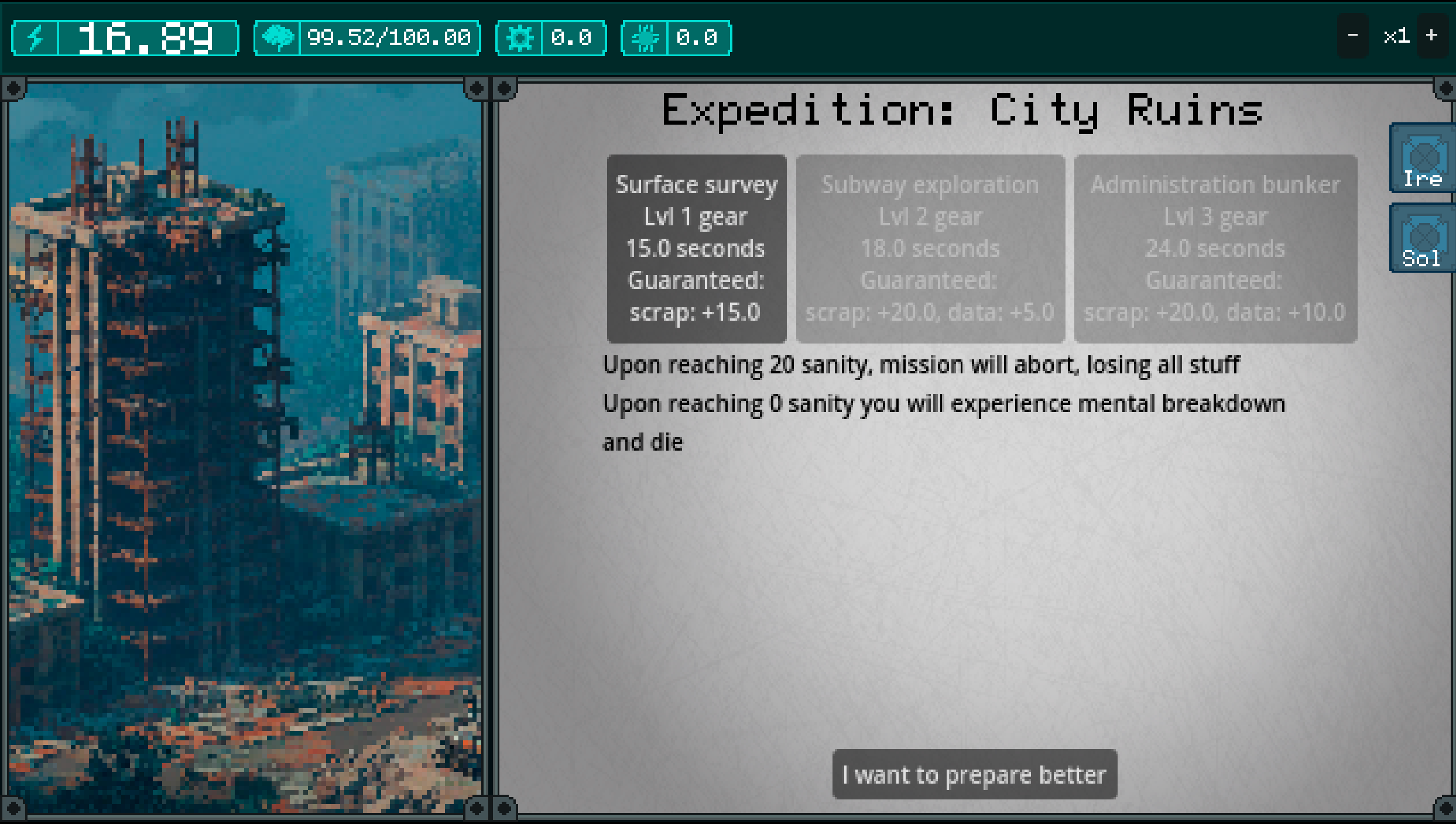 - Starting conditions doesn't match the opening dialogue (make proper tutorial/onboarding)
